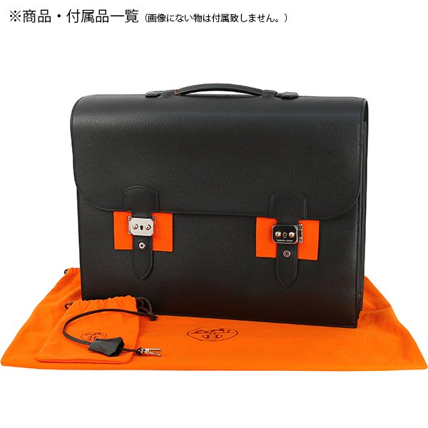 エルメス ブリーフケース サックアデペッシュ 42 エプソン レザー ブラック 黒 シルバー金具 エルメス ビジネスバッグ HERMES メンズ ダブルベルト 大容量 書類カバン A4 ハンドバッグ 本革 ブランド ハンドバック バック BAG HANDBAG 新品同様 美品 中古 送料無料